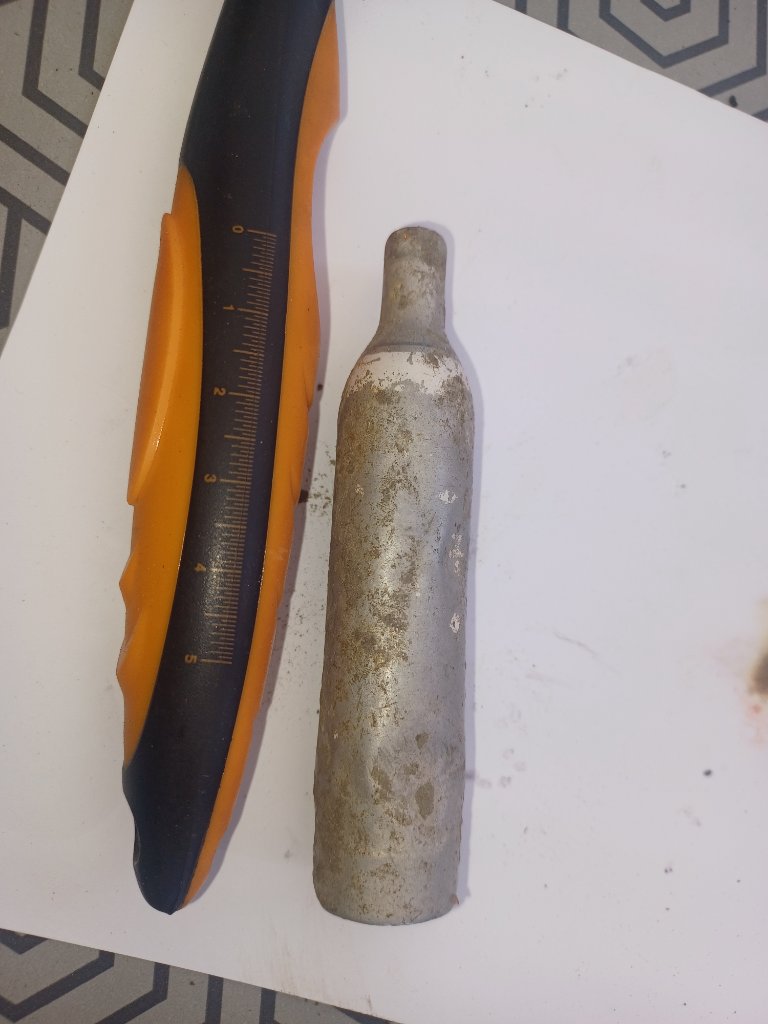 hoi, dat aluminium cylindertje herken ik niet. de andere stukken zijn van een geexplodeerde granaat ontsteker