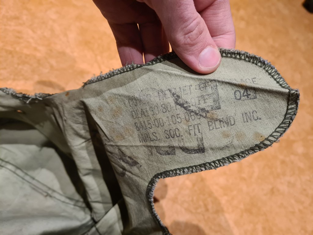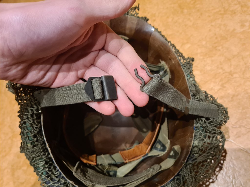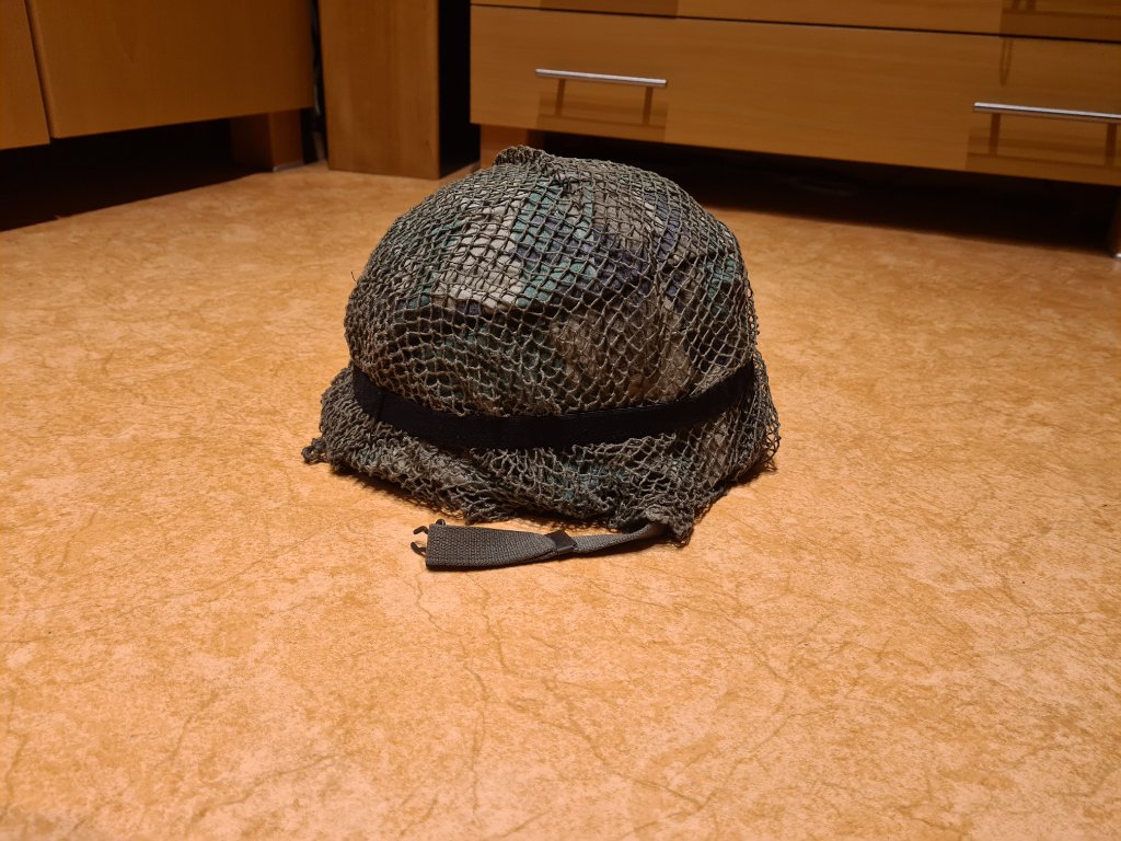 De binnenhelm is Belgisch dus niet origineel maar past wel, de hoes is een 1980 gedateerde Amerikaanse ERDL cover die ook veel door Nederlandse militairen gebruikt werd.