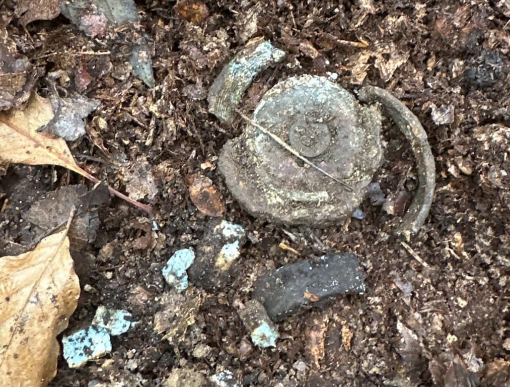 Ik durf echt niet te zeggen wat dit is, lijkt op een deel van een granaat. Zie ook de koper oxidatie.