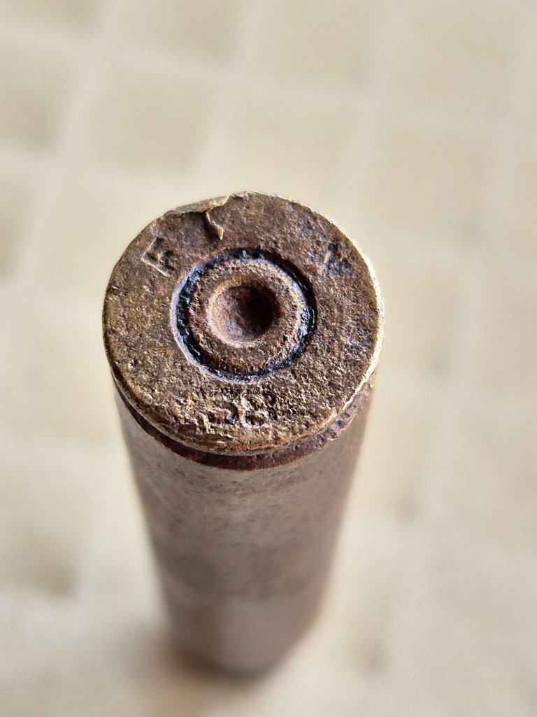 Kan iemand deze huls in bijlage identificeren? Werd aangetroffen aan de Belgische kust. Voor zover ik kan zien staat op de bodem het opschrift FN en 38 (dus het merk ken ik al