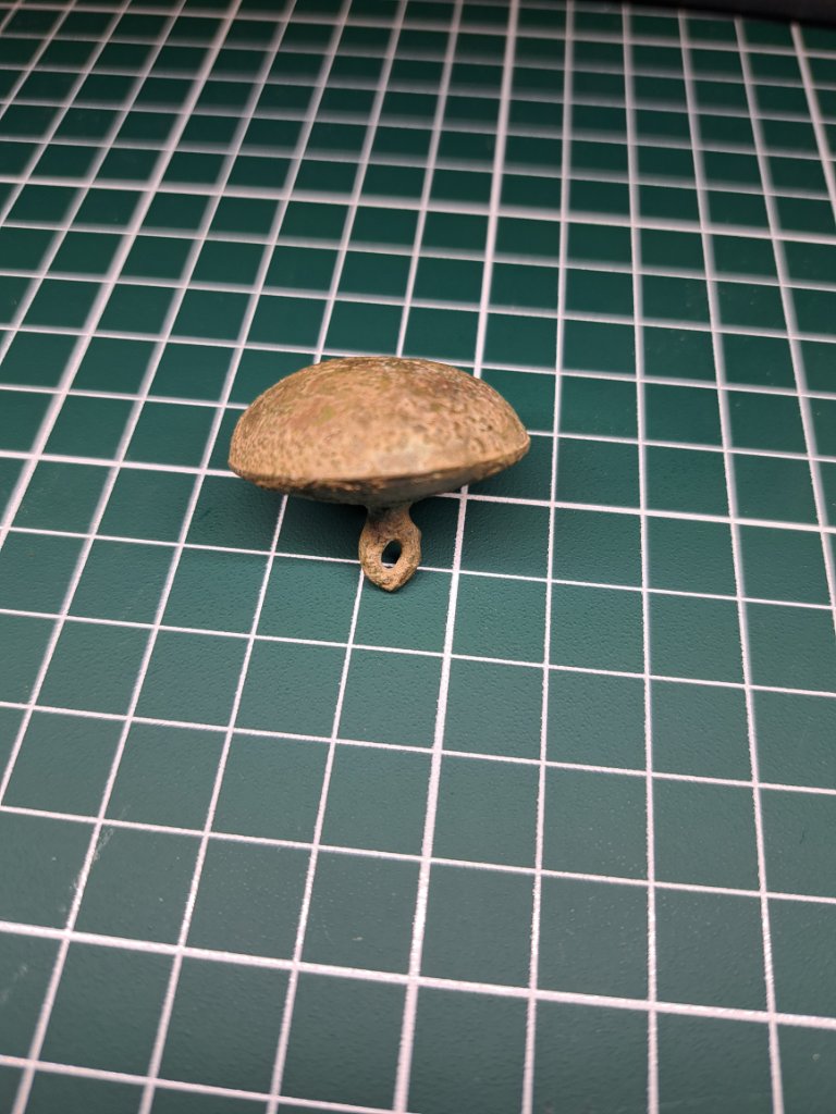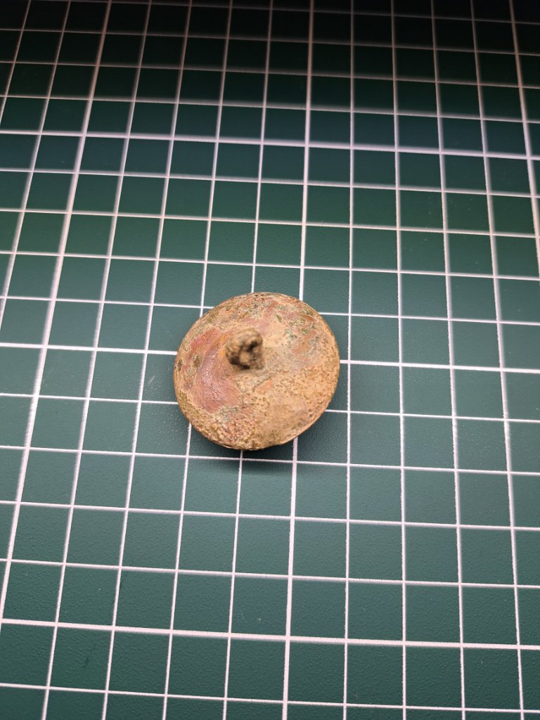 Gisteren mijn eerste zoekdag van het jaar weer gehad. Daarbij ben ik deze knoop tegengekomen. Heeft een van jullie toevallig een idee waarvan deze kan zijn?
