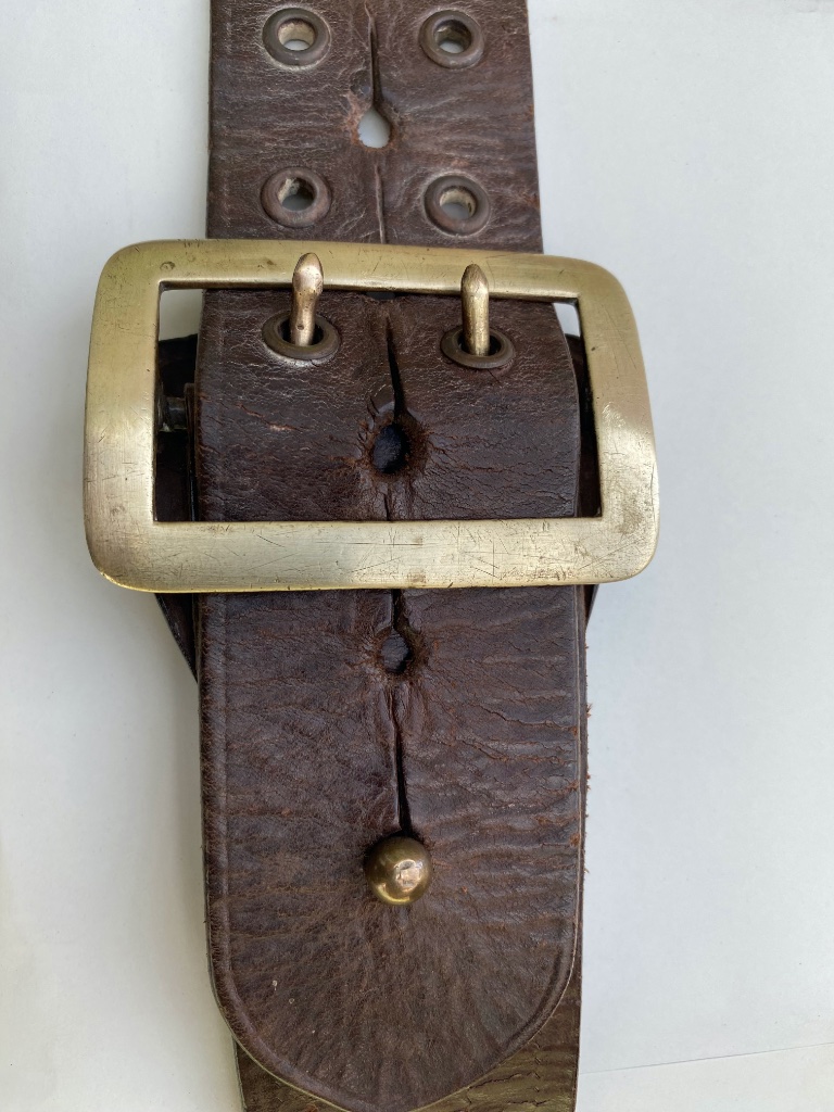 De openingen in de riem zijn ook versterkt met koperen ringetjes erin.