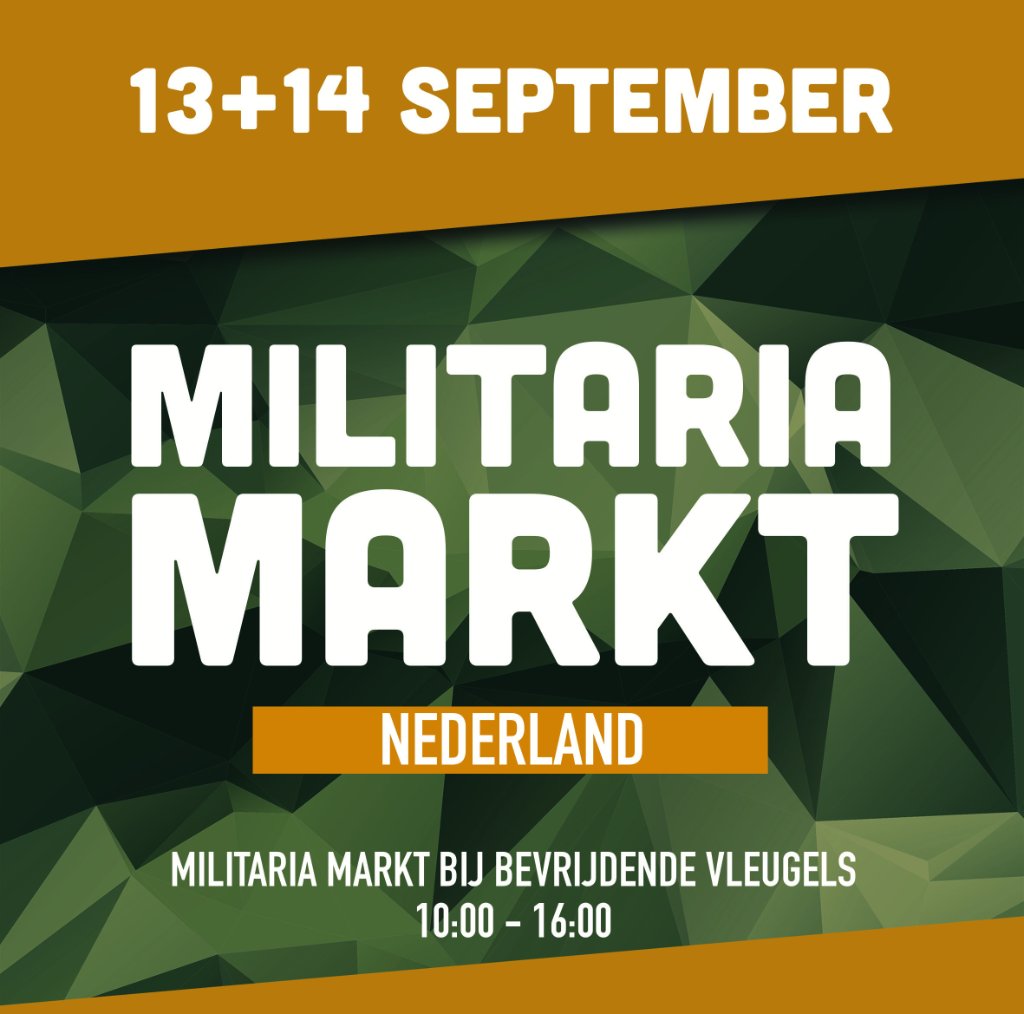Tijdens het drukbezochte Remember September weekend bij museum Bevrijdende Vleugels, vind ook de militaria Markt Nederland plaats. Op 13 en 14 september, van 10.00u tot 16.00u, kunnen de bezoekers rondstruinen tussen de vele kramen met unieke originele spullen uit de tijd van WW2 en de bevrijding. Bezoekers kunnen de Militaria Markt los bezoeken voor slechts 6 euro. Een combitcket voor de Militaria Markt en het Remember September evenement kost 16 euro.